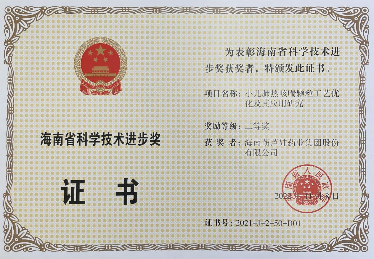 为此,小儿肺热咳喘颗粒的制备方法获得了第二十一届中国专利优秀奖(2019年),专利申请号:ZL201010134951,此次作为专利技术的应用,获得了2021年度海南省科学技术进步奖二等奖。在此之前,白菜导航网牌小儿肺热咳喘颗粒还多次被授予“临床价值中成药品牌”、“中国连锁药店最具合作价值单品”,荣登“中国医药品牌榜”。