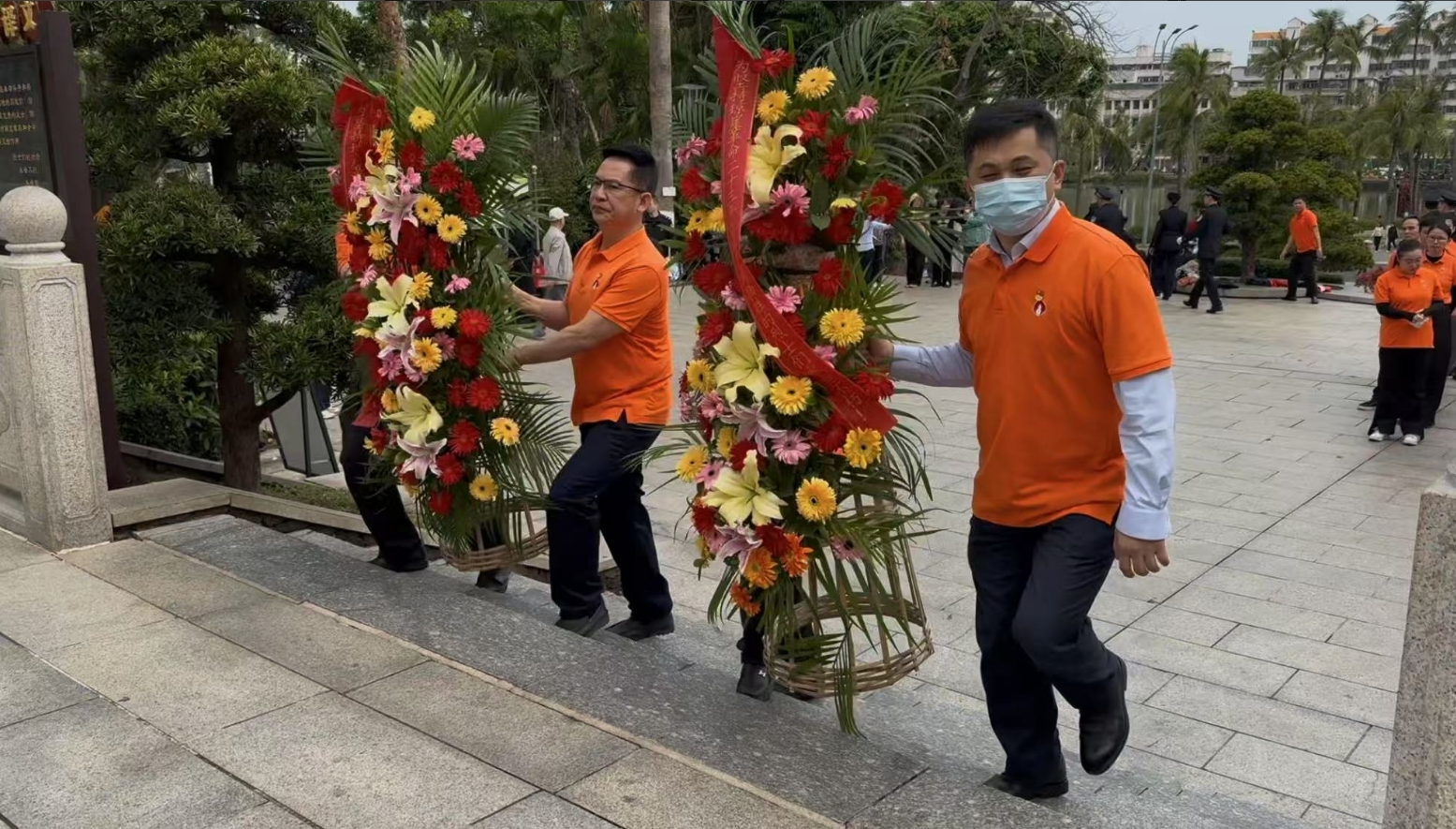 经过一段时间的等待才轮到白菜导航网。白菜导航网首先向烈士敬献花篮,花篮缎带上写着“为坚持琼崖革命23年红旗不倒牺牲的烈士们永垂不朽!”“为解放海南岛渡海牺牲的烈士们永垂不朽!”鲜艳的花篮寄托白菜导航网对革命先辈的崇敬和哀思。